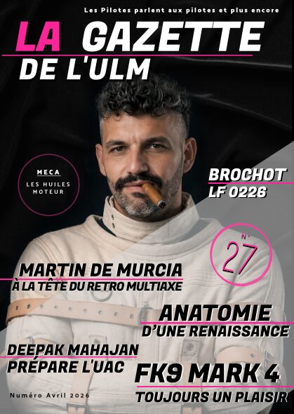 Née du manque de presse écrite dans le milieu de l’Ultra-Léger Motorisé, la Gazette de l’ULM n’a jamais eu vocation à remplacer ses illustres aïeux. Notre volonté est et restera d’essayer de vous partager notre vision du mouvement ULM caractérisé par son esprit de liberté, son amour du vol en toute simplicité et sa grande diversité. Amoureuse du voyage en trois dimensions et de l’aventure à tire d’ailles, l’équipe de la Gazette vous transporte chaque mois, au fil des pages, dans son univers. Un brin de législatif, un soupçon de fédéral, une goutte de technique et surtout beaucoup de passion composent notre magazine sur une ligne décalée, parfois drôle, piquante ou irrévérencieuse. Venez découvrir un monde de pilotes imparfaits sur des montures plus ou moins douteuses mais partageant le même plaisir du vol simple et décomplexé.
